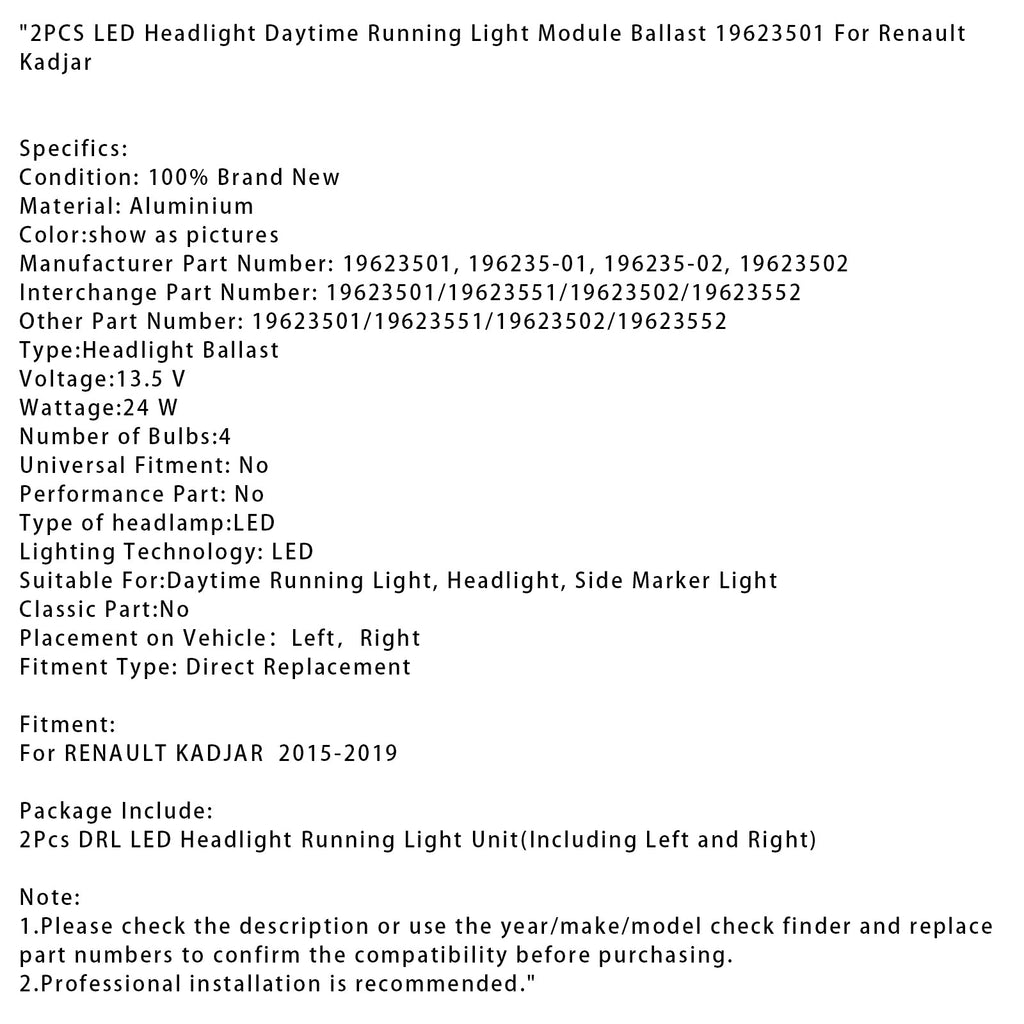 2PCS LED Headlight Daytime Running Light Module Ballast 19623501 For Renault Kadjar