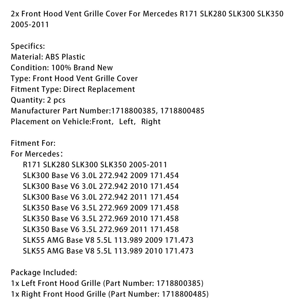 2x Front Hood Vent Grille Cover For Mercedes R171 SLK280 SLK300 SLK350 2005-2011