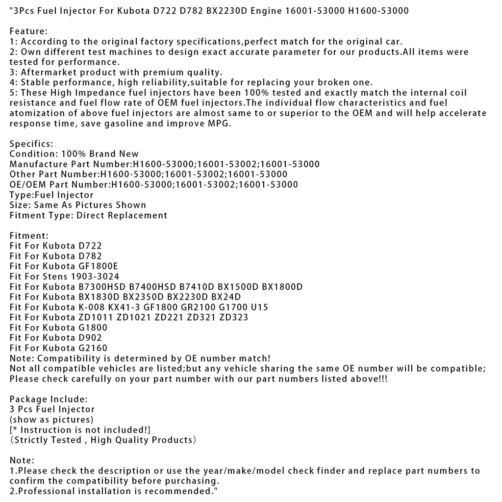 3Pcs Fuel Injector For Kubota D722 D782 BX2230D Engine 16001-53000 H1600-53000