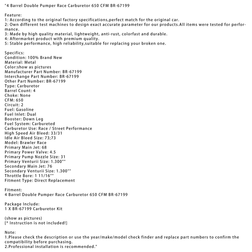 4 Barrel Double Pumper Race Carburetor 650 CFM BR-67199