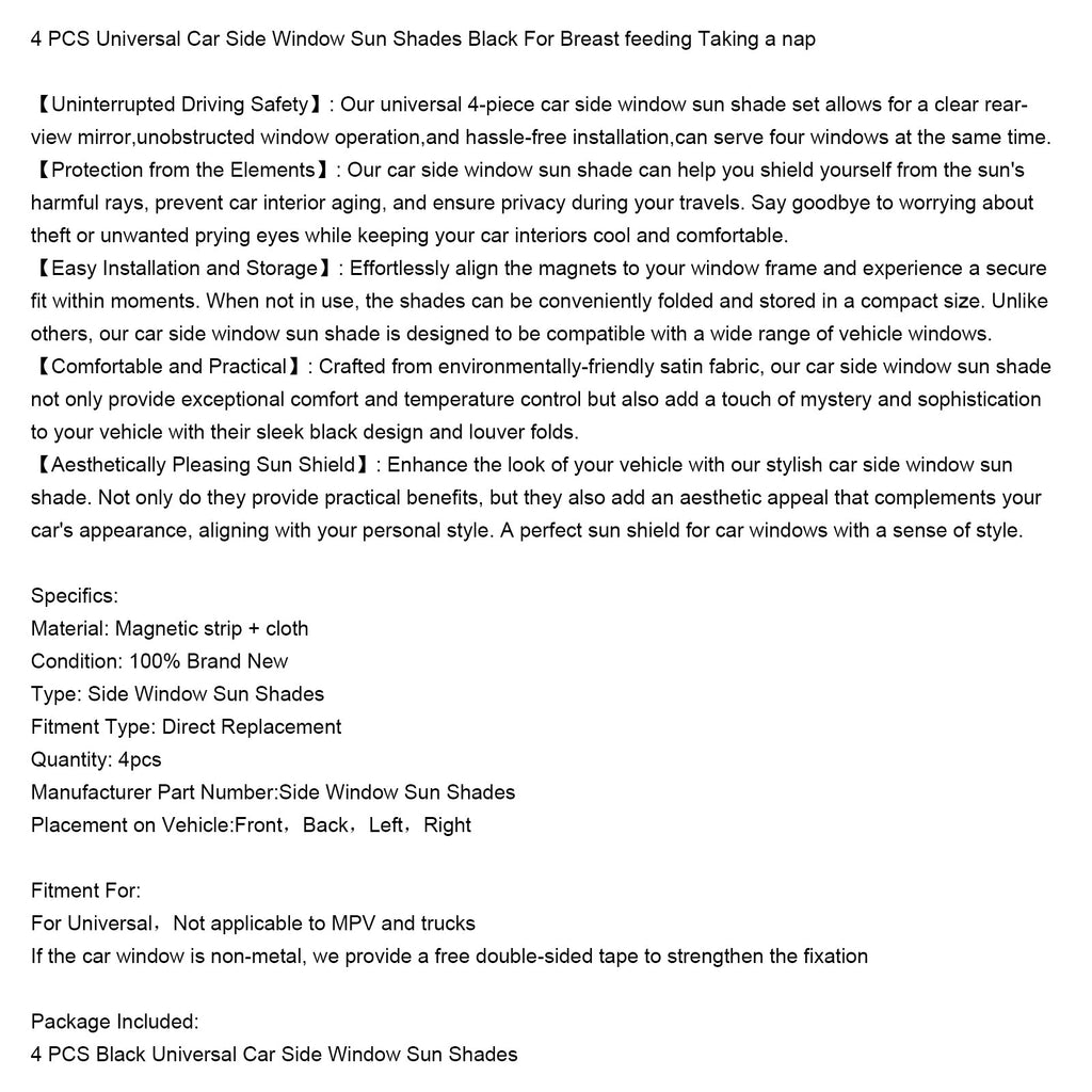 4 PCS Universal Car Side Window Sun Shades Black For Breast feeding Taking a nap