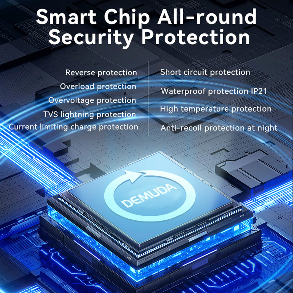 TVS lightning protection, load overpower protection, waterproof protection IP21, current limiting charging protection, night anti-recoil protection
