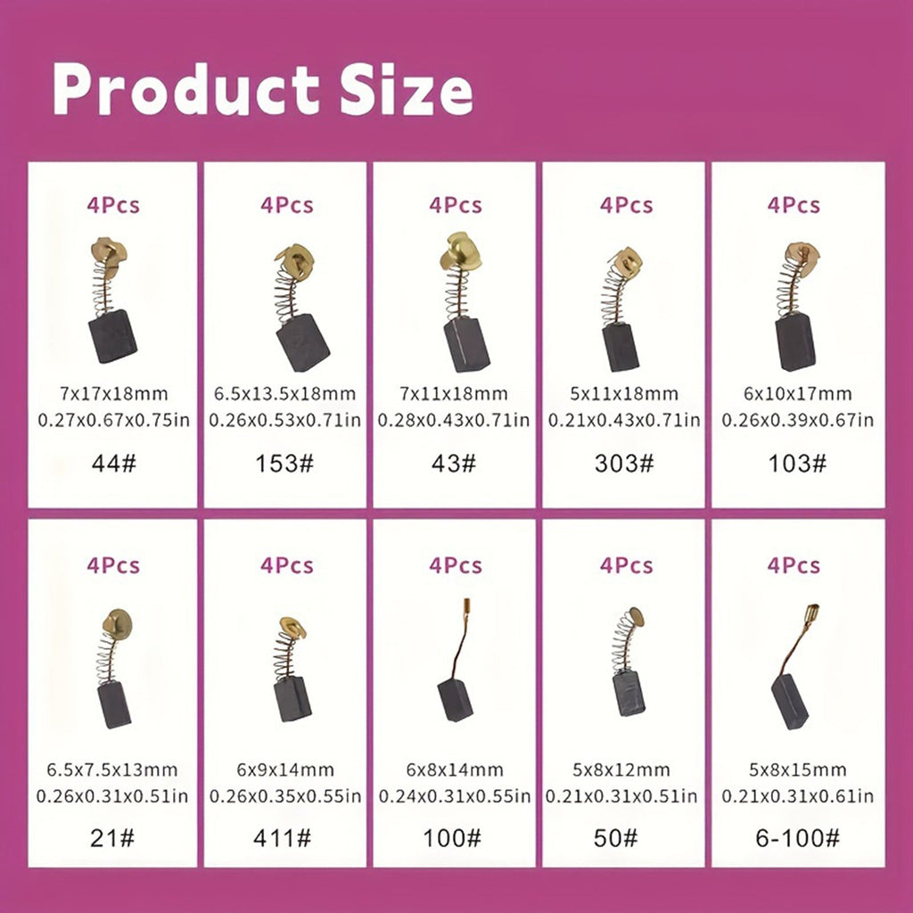 40Pcs 10 Sizes Electric Motor Carbon Brushes Replacement For Power Tool