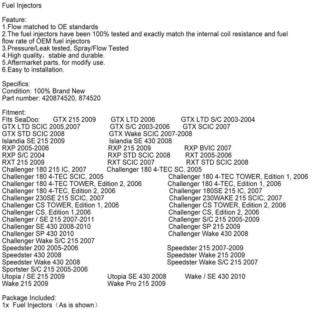 420874520 Fuel Injectors 874520 For Sea-Doo GTX 4 TEC GTX 215 GTX RXP