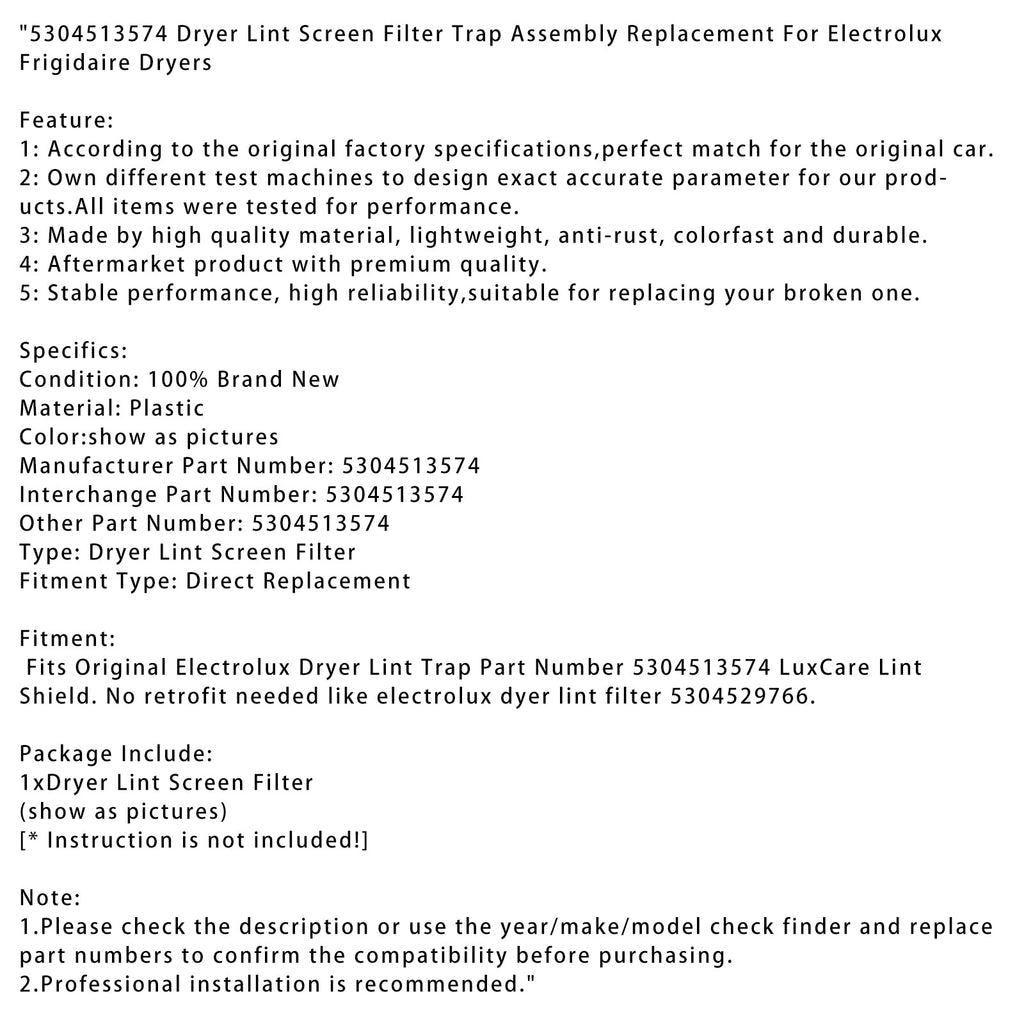 Fits Original Electrolux Dryer Lint Trap Part Number 5304513574 LuxCare Lint Shield. No retrofit needed like electrolux dyer lint filter 5304529766.