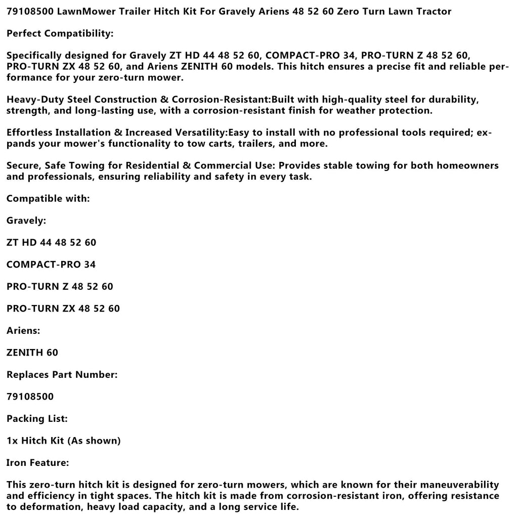 79108500 LawnMower Trailer Hitch Kit For Gravely Ariens48 52 60Zero Lawn Tractor