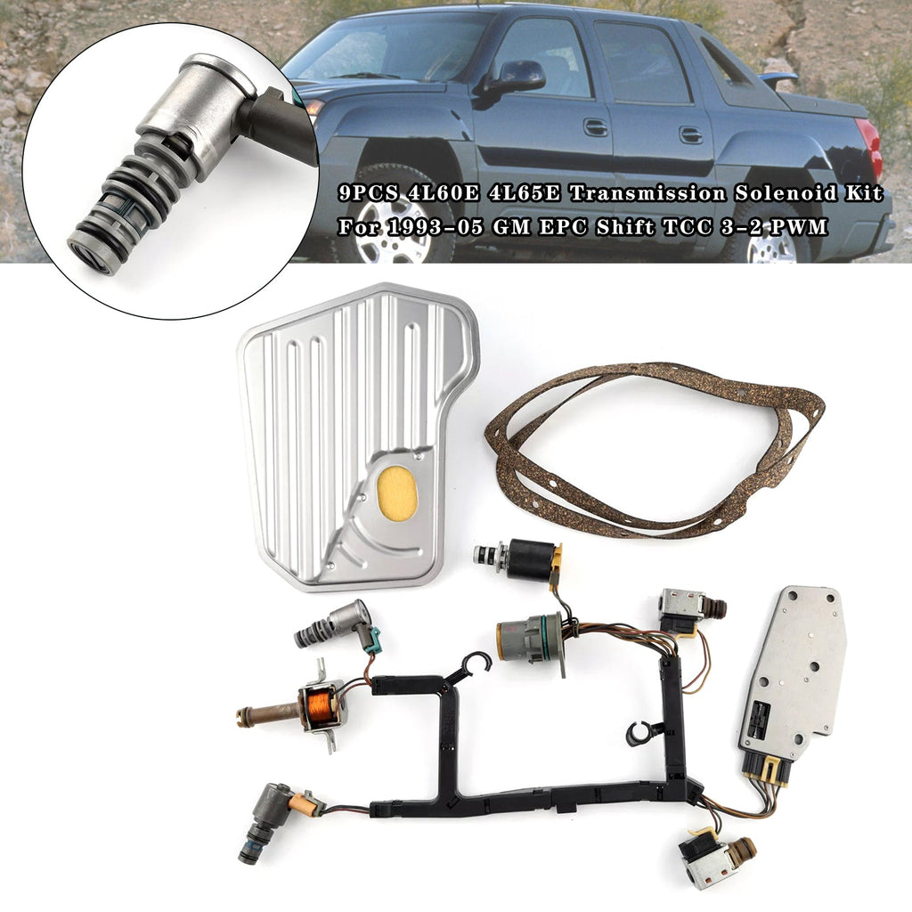 9PCS 4L60E 4L65E Transmission Solenoid Kit For 1993-05 GM EPC Shift TCC 3-2 PWM