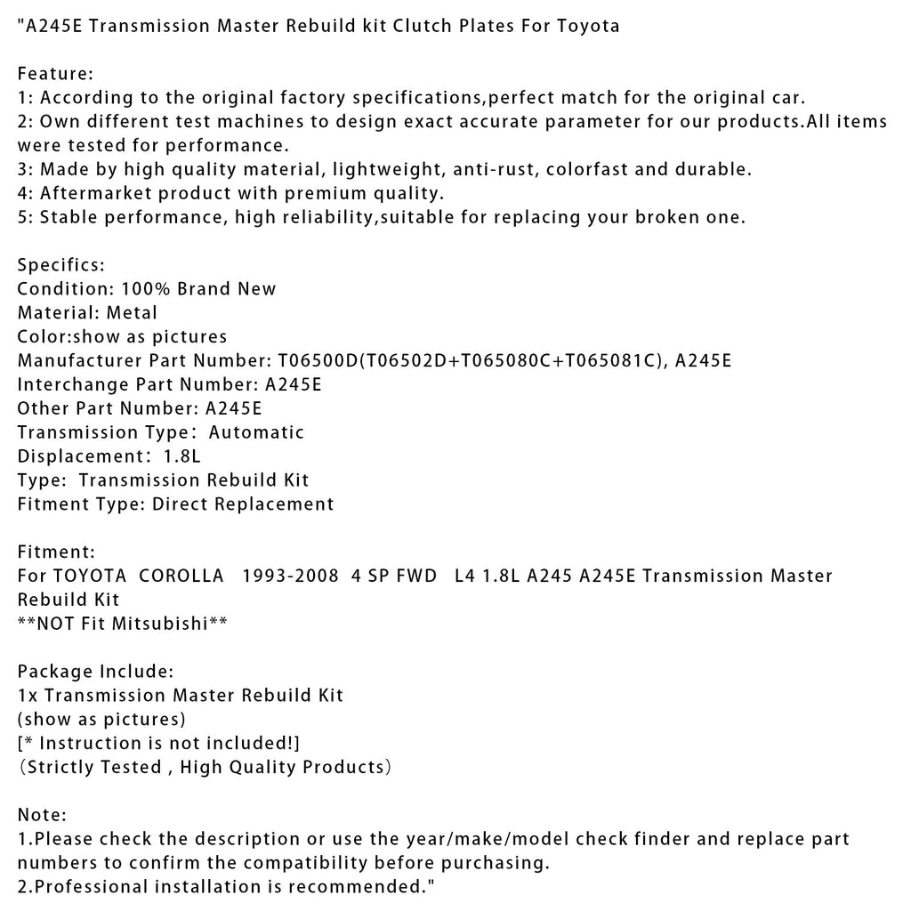 For TOYOTA COROLLA 1993-2008 4 SP FWD L4 1.8L A245 A245E Transmission Master Rebuild Kit