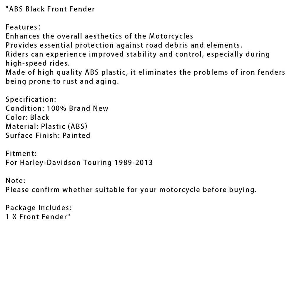 ABS Black Front Fender Fit For Touring Road King Street Glide 1989-2013