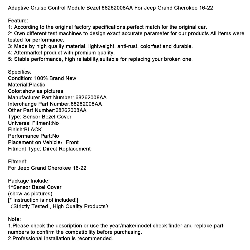 Adaptive Cruise Control Module Bezel 68262008AA For Jeep Grand Cherokee 2016-2022