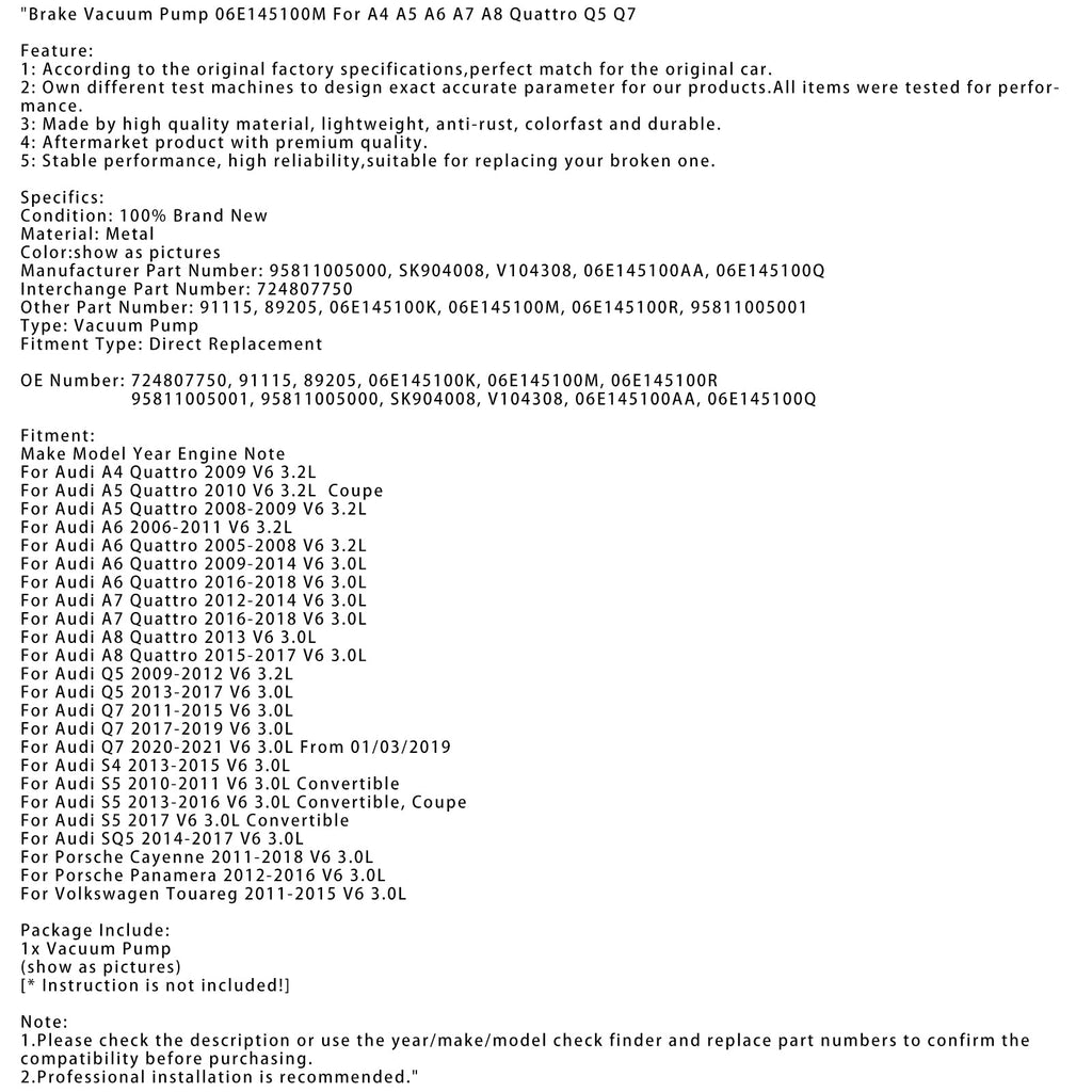 Brake Vacuum Pump 06E145100M For A4 A5 A6 A7 A8 Quattro Q5 Q7
