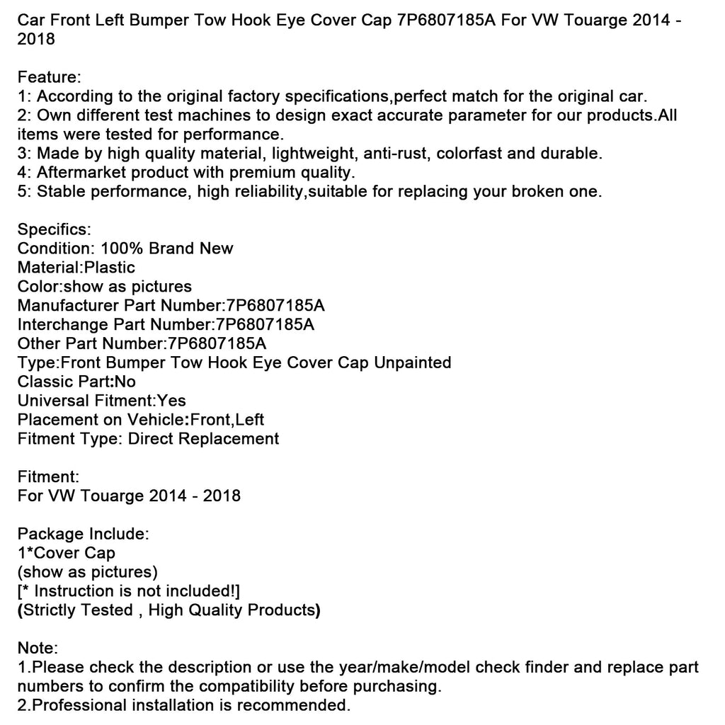 Car Front Left Bumper Tow Hook Eye Cover Cap 7P6807185A For VW Touarge 14-18