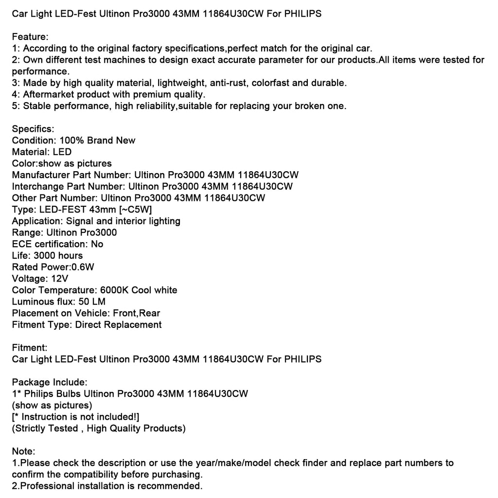 Car Light LED-Fest Ultinon Pro3000 43MM 11864U30CW For PHILIPS