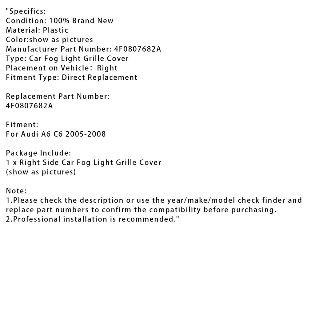 Car Right Side Fog Light Grille Cover For Audi A6 C6 2005-2008