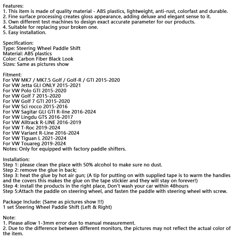 Carbon Look Steering Wheel Paddle Shifter Extension Covers Fit VW MK7 Golf