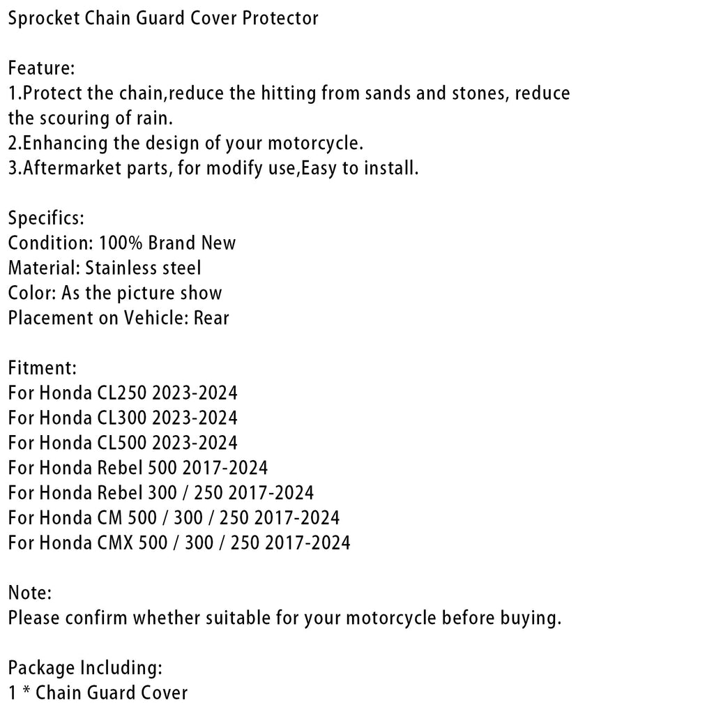 Chain Guard Cover Protector For Honda Rebel CL 250 300 500 CM CMX 17-24