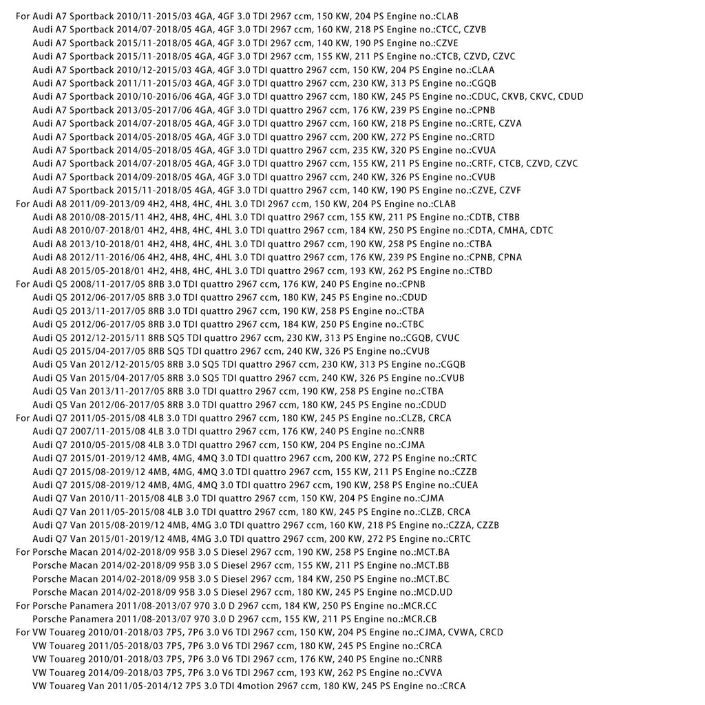 For Audi Q7 Van 2015/08-2019/12 4MB, 4MG 3.0 TDI quattro 2967 ccm, 160 KW, 218 PS Engine no.:CZZA, CZZB