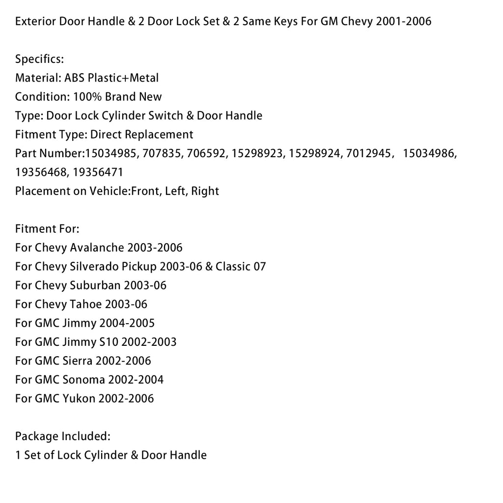 Exterior Door Handle & 2 Door Lock Set & 2 SAME KEYS For GM Chevy 2001-2006