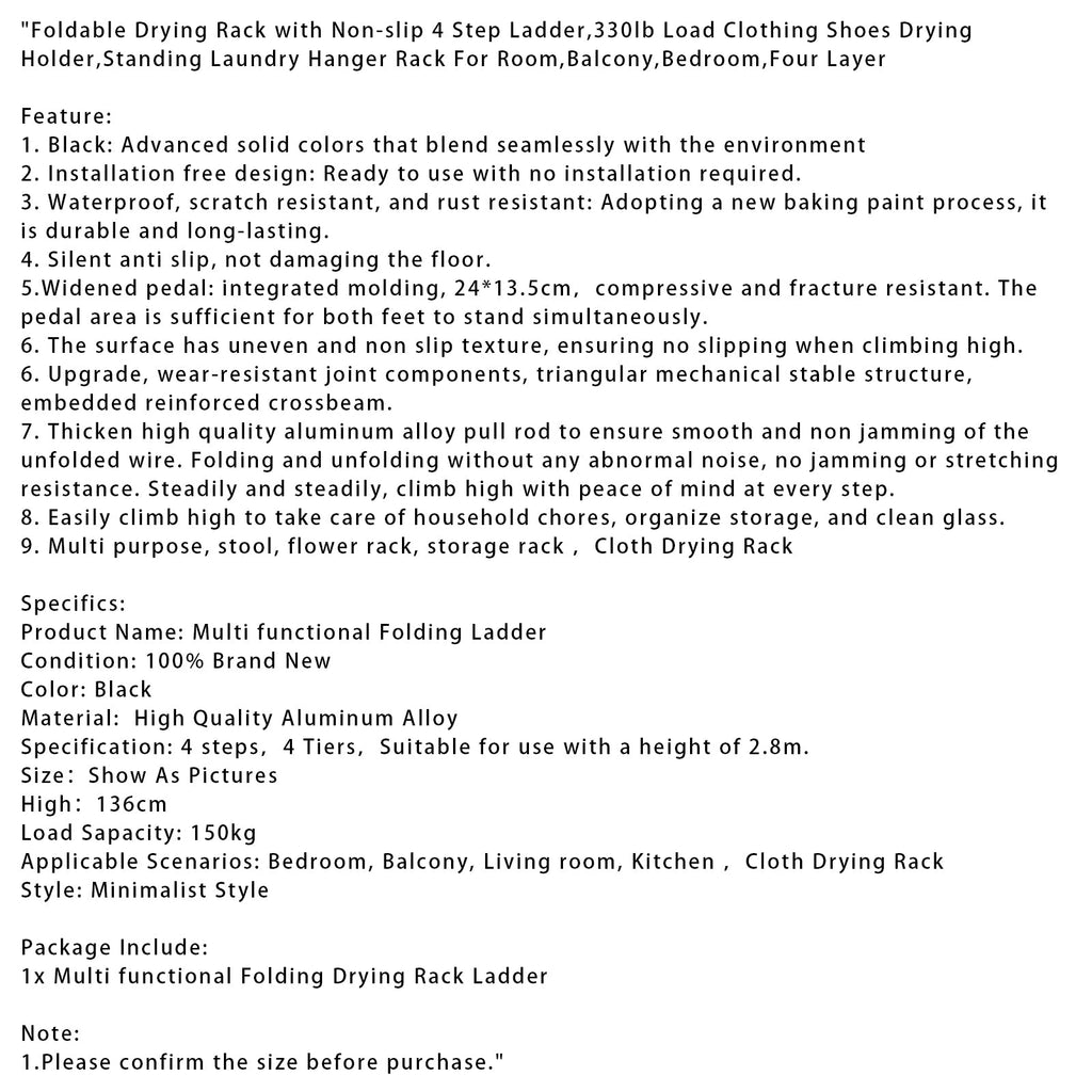 Foldable Drying Rack with Non-slip 4 Step Ladder,330lb Load Clothing Shoes Drying Holder,Standing Laundry Hanger Rack For Room,Balcony,Bedroom,Four Layer