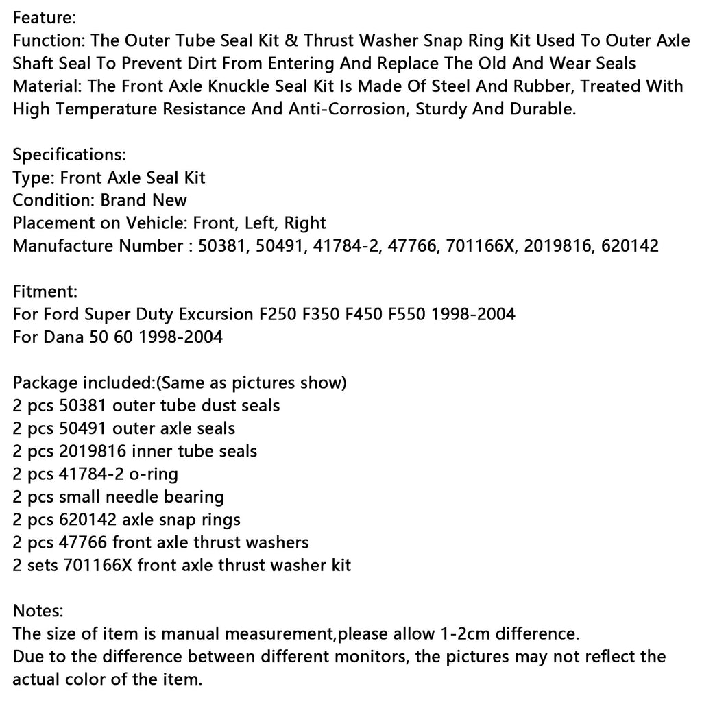 Front Axle Seal and Thrust Washer Kit Fit Ford Excursion F250 F350 1998-2004