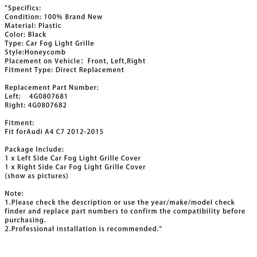 Front Bumper Honeycomb Fog Grille Cover For Audi A4 C7 2012-2015 Black