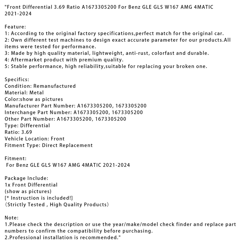 Front Differential 3.69 Ratio A1673305200 For Benz GLE GLS W167 AMG 4MATIC 2021-2024