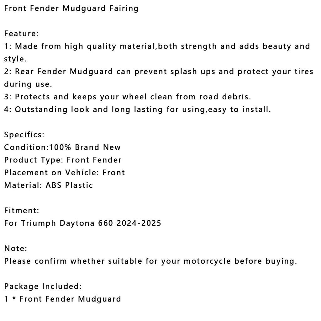 Front Fender Mudguard Fairing Cowl Fit For Daytona 660 2024-2025