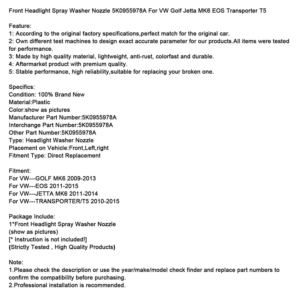 Front Headlight Spray Washer Nozzle 5K0955978A For VW Golf Jetta MK6 EOS Transporter T5