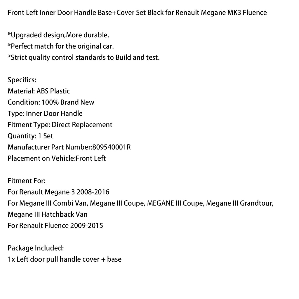 Front Left Inner Door Handle Base+Cover Set Black Fit for Renault Megane MK3 Fluence