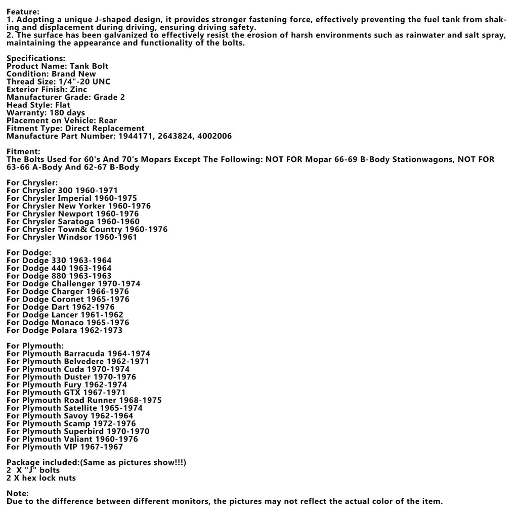 Gas Fuel Tank Strap Bolts J-Bolts Fit 68 69 70 71 72 A-Body B-Body C-Body