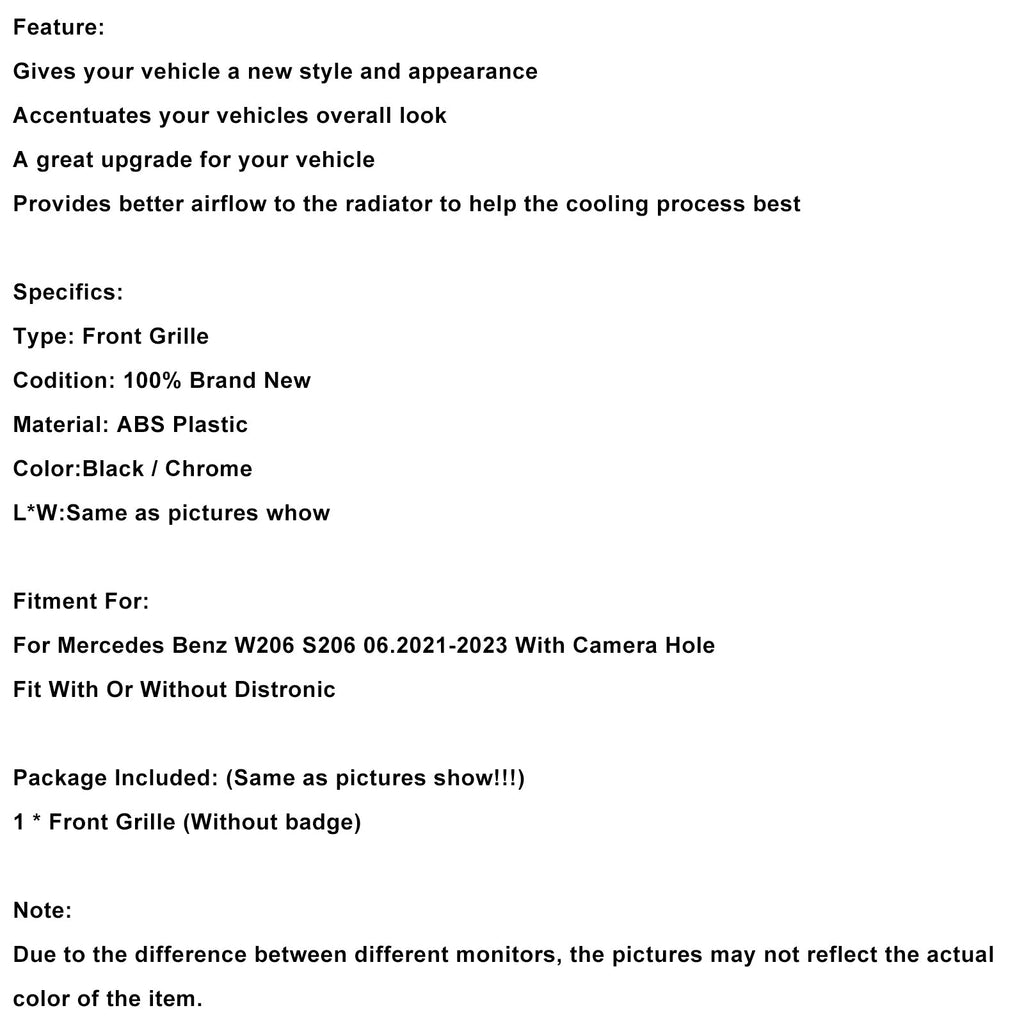 GT-R Style Front Bumper Grille Grill fit for Mercedes Benz W206 2022-2023 W/Camera