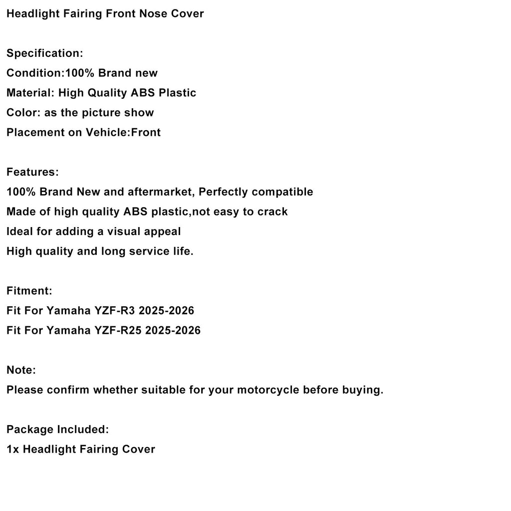 Headlight Fairing Front Nose Cover Fit For Yamaha YZF-R3 R25 2025-2026
