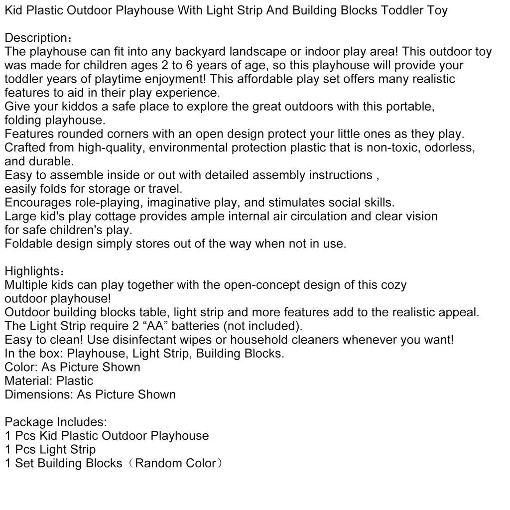 Kid Plastic Outdoor Playhouse With Light Strip And Building Blocks Toddler Toy