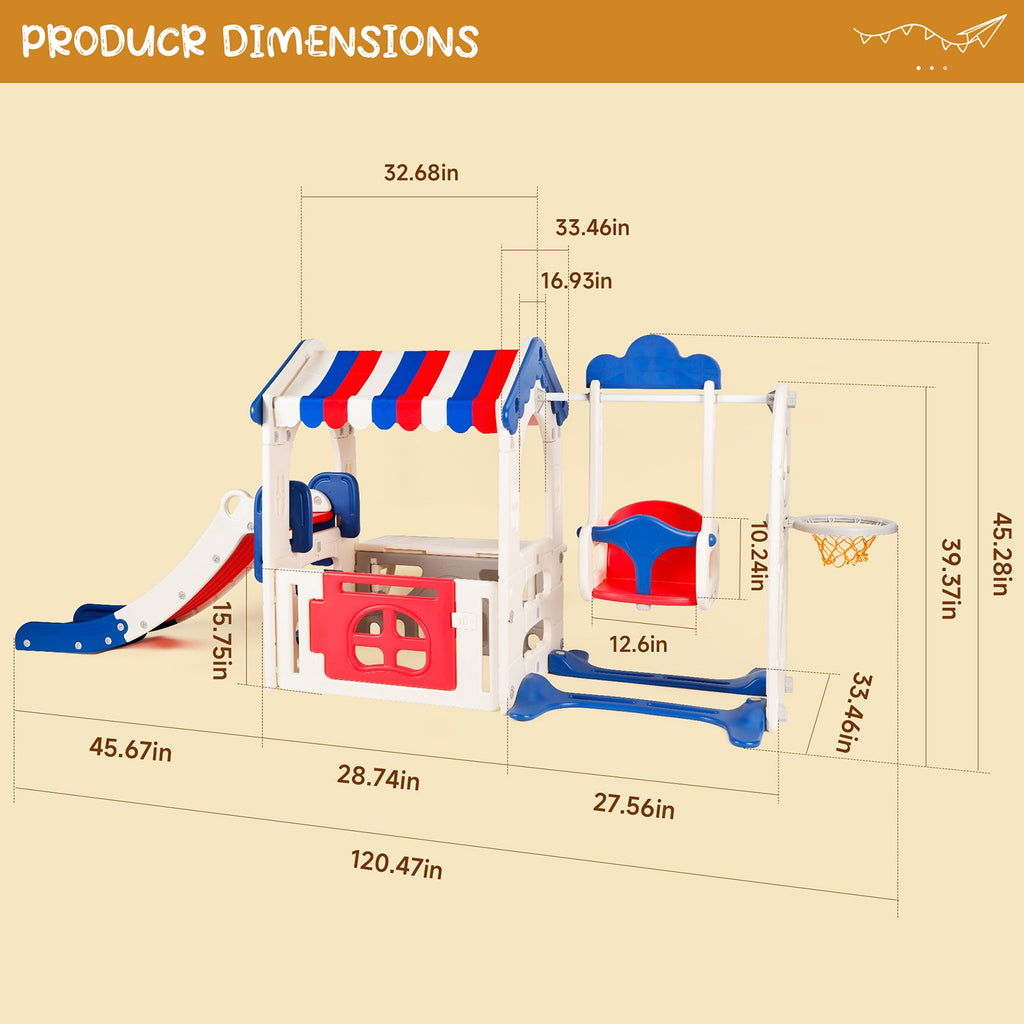 Kid Playset Structure With Slide,Swing And Playhouse Indoor Outdoor Activity