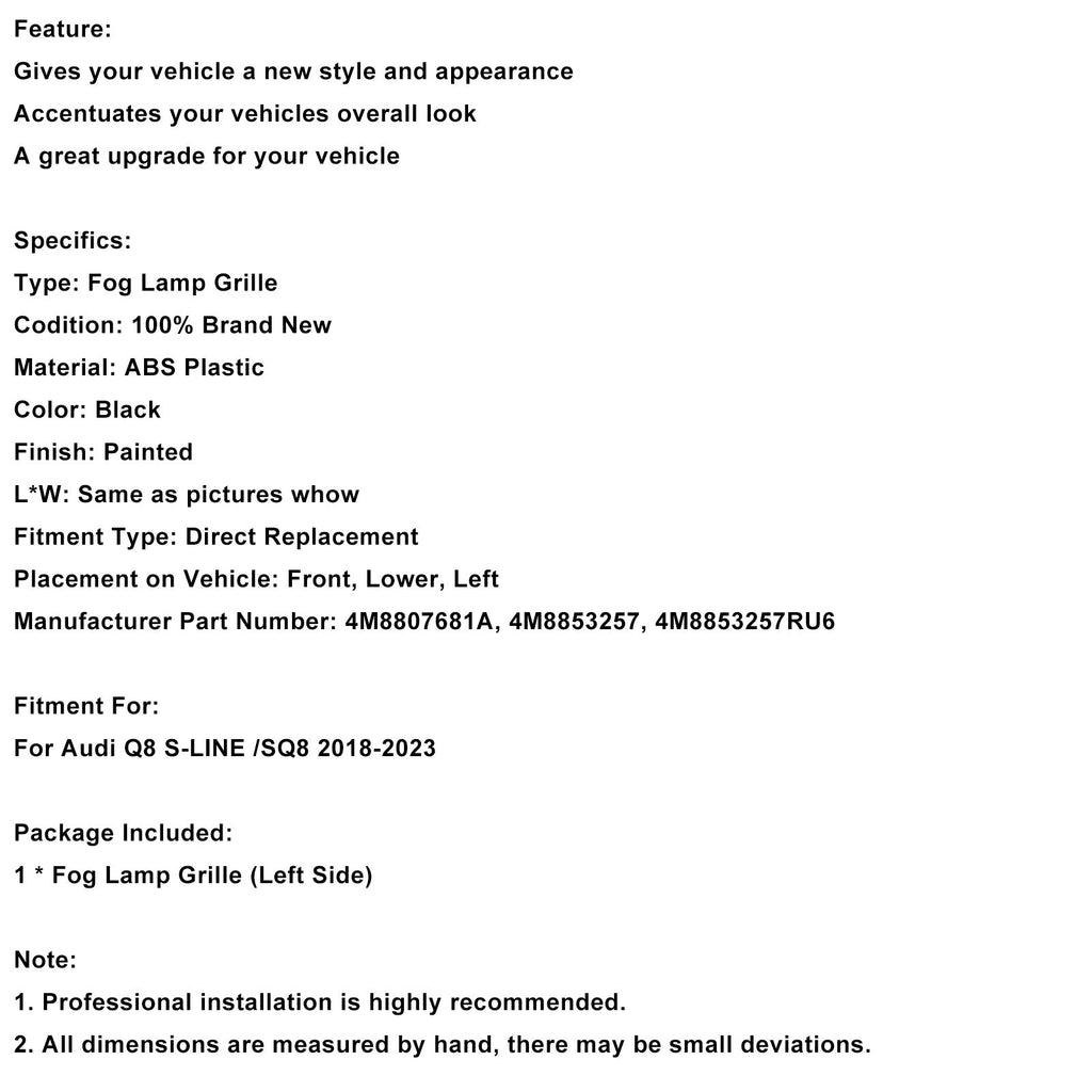 2018-2023 Audi Q8 S-Line SQ8 Left Front Bumper Grill Trim 4M8807681A