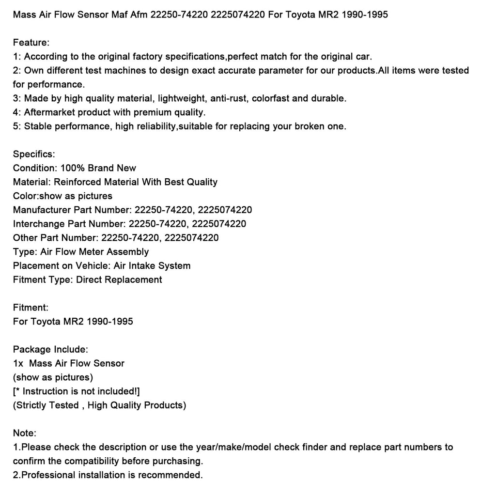 Mass Air Flow Sensor Maf Afm 22250-74220 2225074220 For Toyota MR2 1990-1995