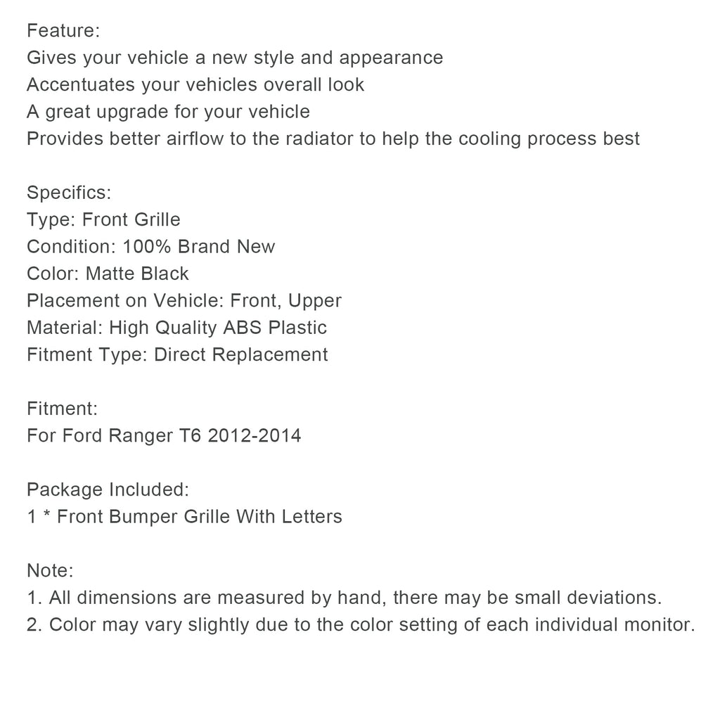 Matt Black Front Bumper Grill Grille Fit Ford Ranger T6 2012-2014 w/ LED Light
