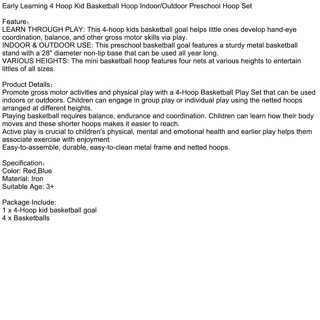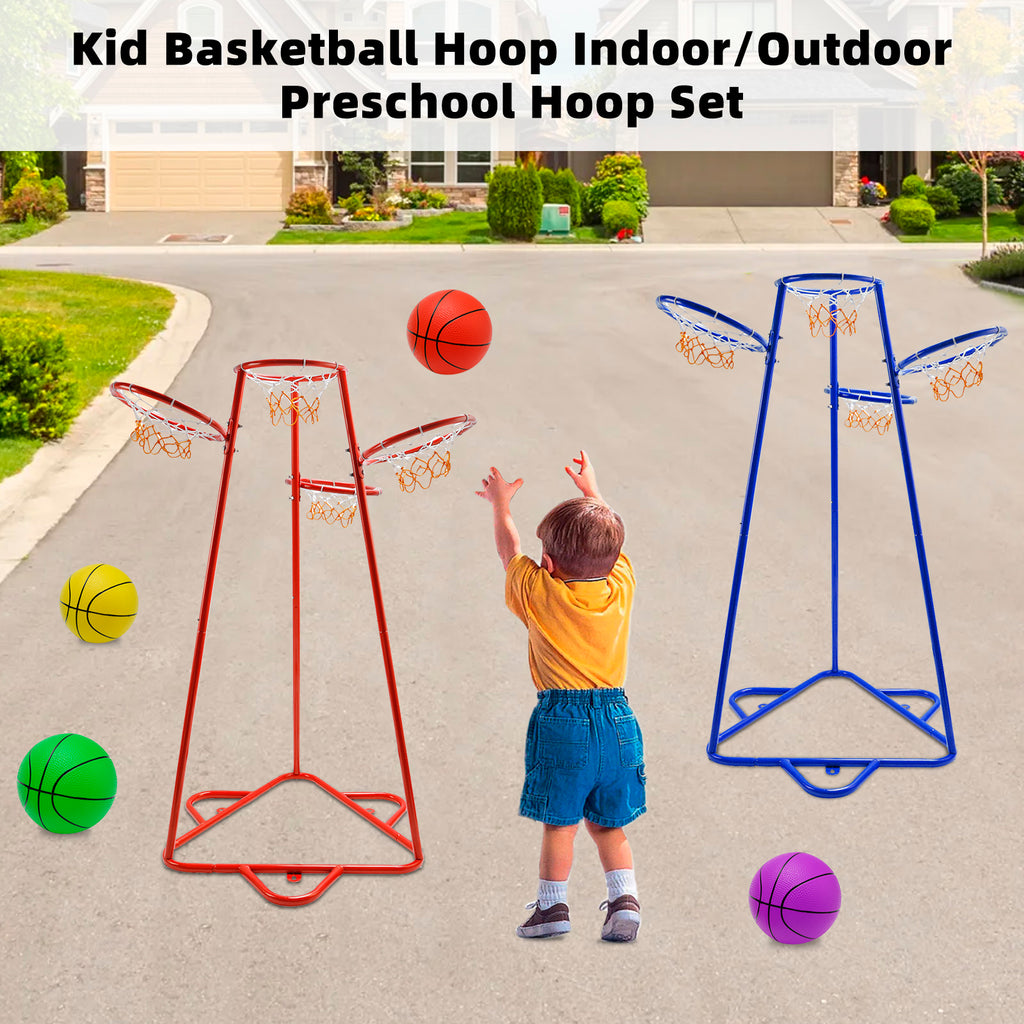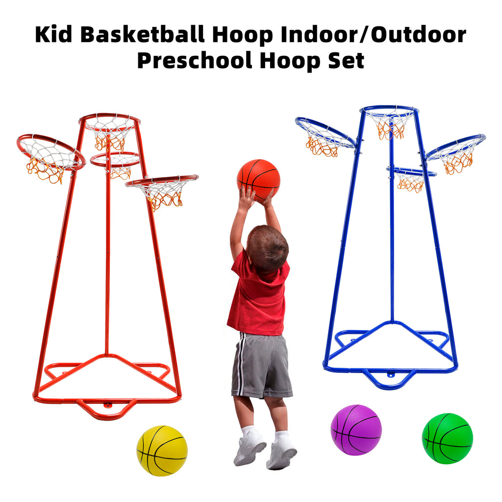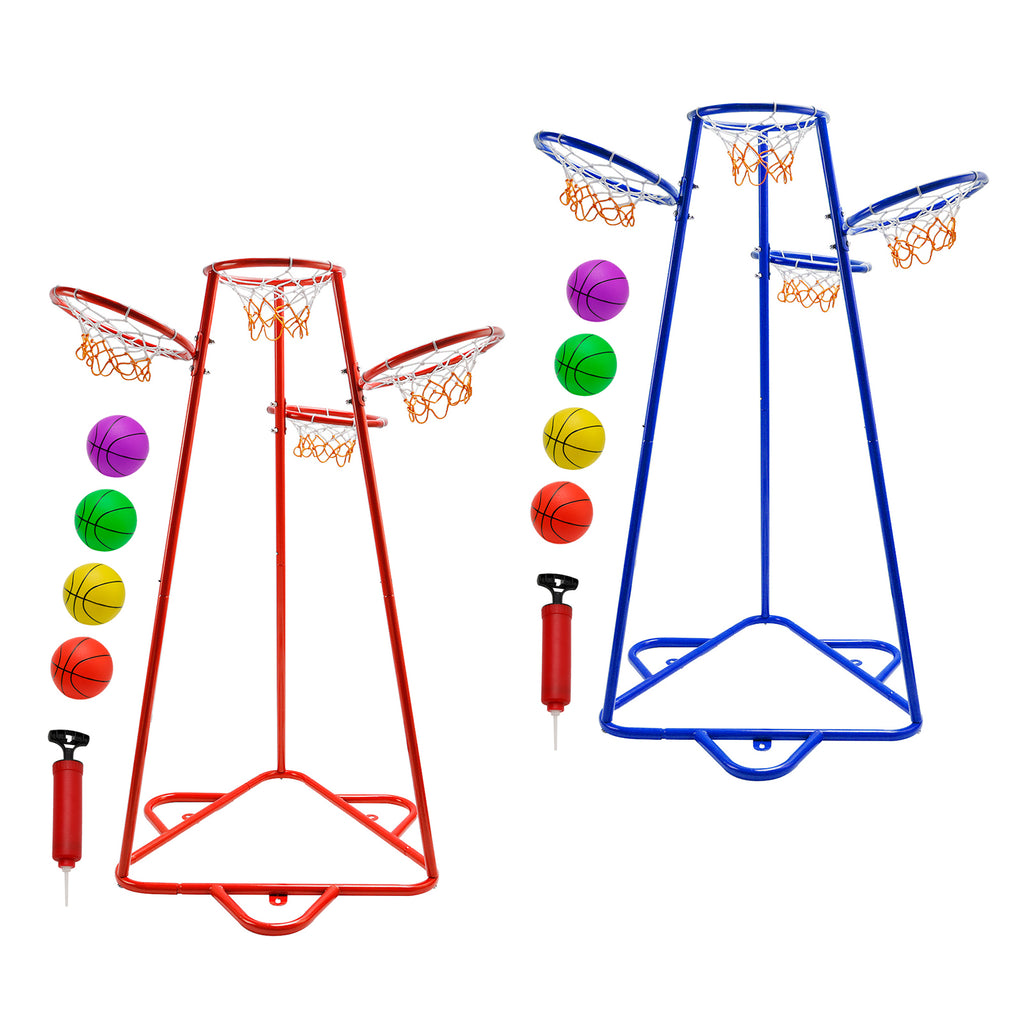 LEARN THROUGH PLAY: This 4-hoop kids basketball goal helps little ones develop hand-eye coordination, balance, and other gross motor skills via play.