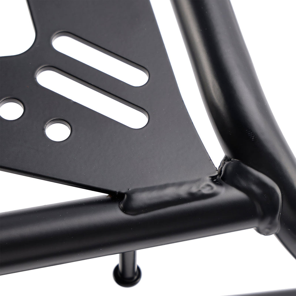 Our tough, cross-braced rack system acts like an additional subframe, strengthening the rear of the bike, acts like a rear crashbar.