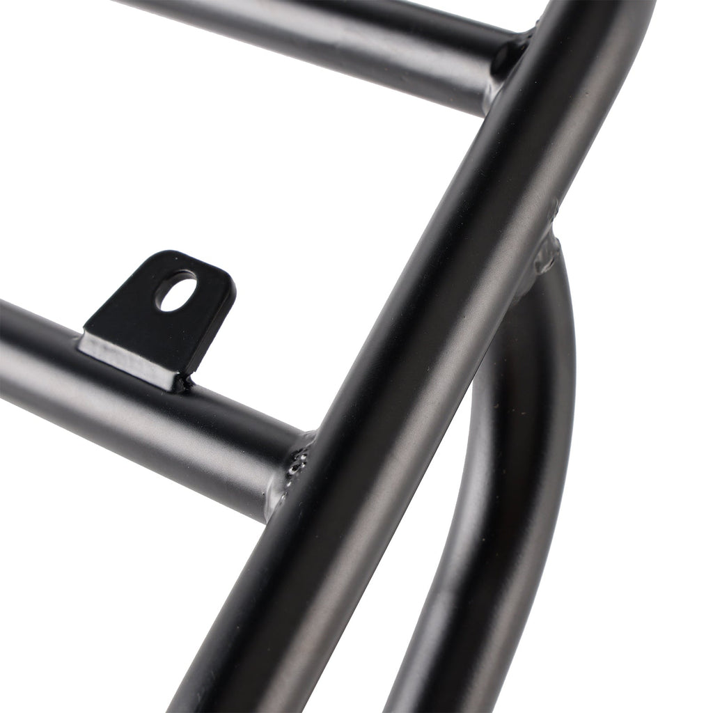 Our tough, cross-braced rack system acts like an additional subframe, strengthening the rear of the bike, acts like a rear crashbar.
