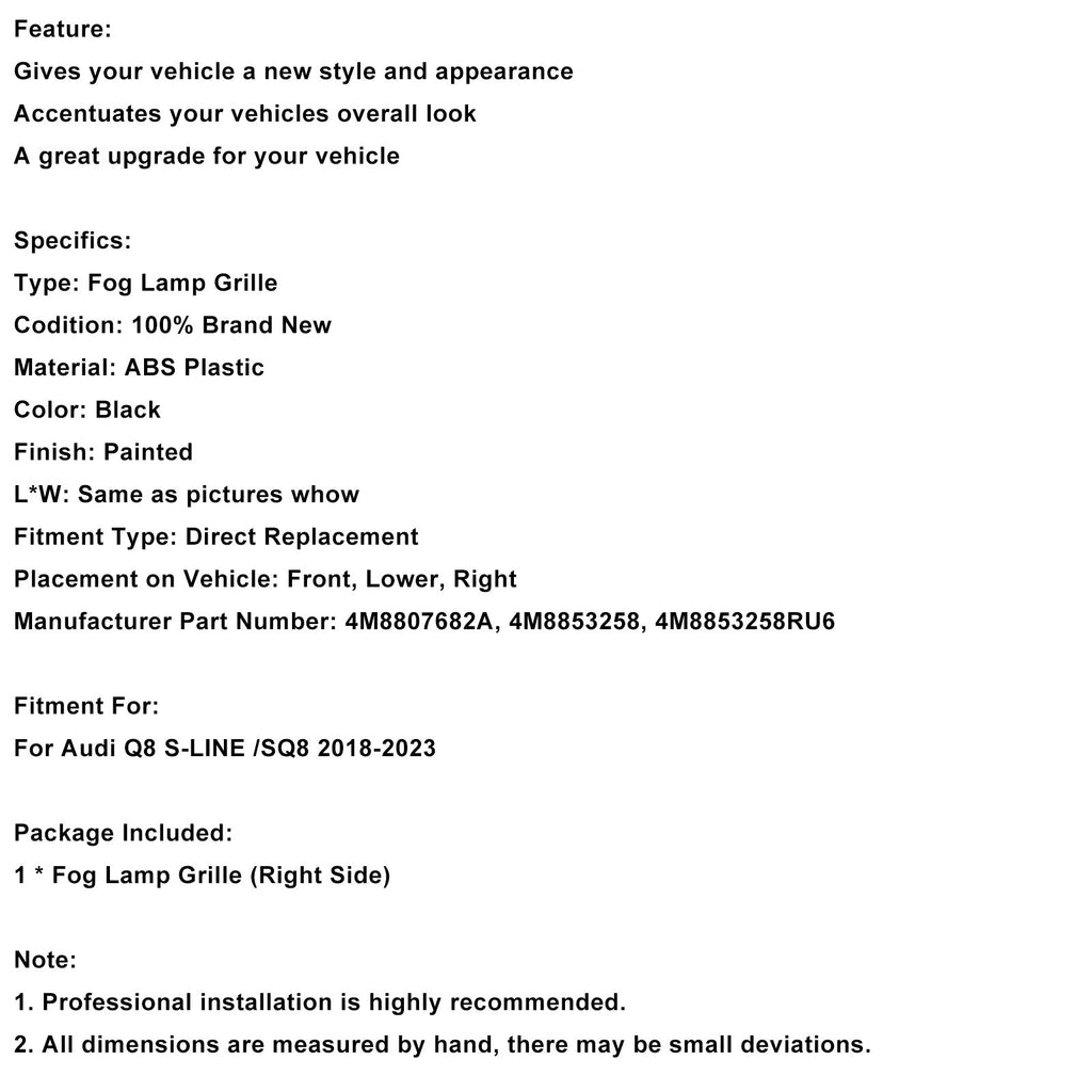Right Front Bumper Grill Trim 4M8807682A Fit Audi Q8 S-Line SQ8 2018-2023