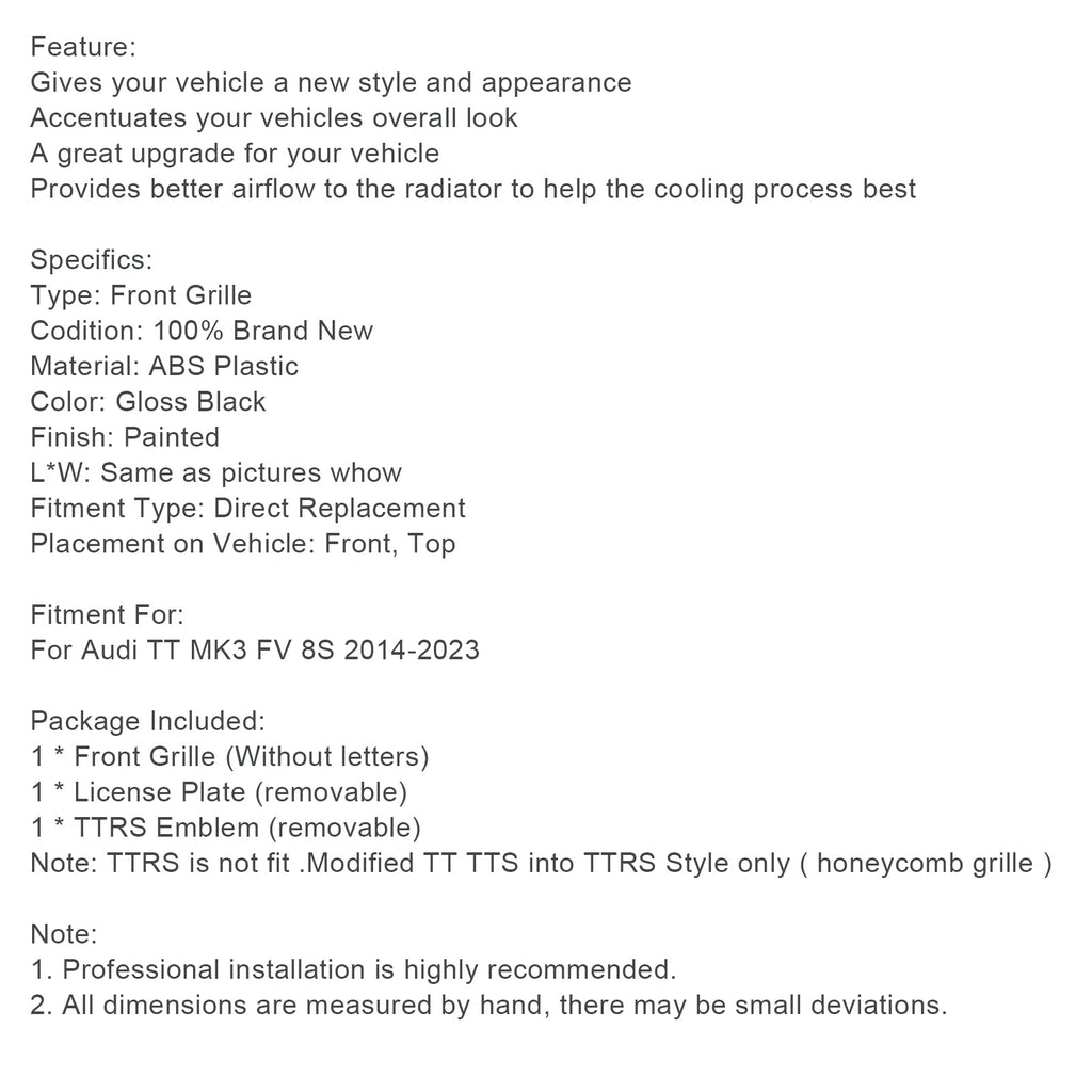 Note: TTRS is not fit .Modified TT TTS into TTRS Style only ( honeycomb grille )