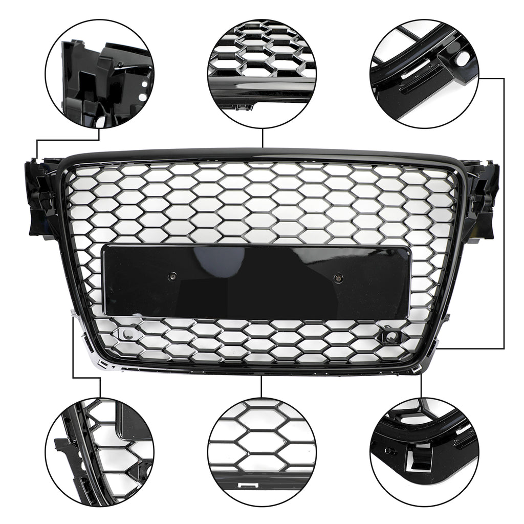 Audi A4/S4 A4 Sline B8 2009-2012 RS4 Style Honeycomb Sport Mesh Hex Grille Grill Black