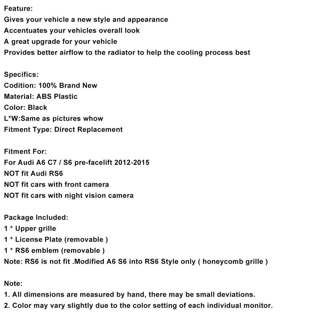 Note: RS6 is not fit .Modified A6 S6 into RS6 Style only ( honeycomb grille )