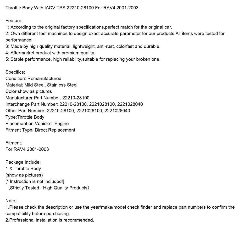 Throttle Body With IACV TPS 22210-28100 For RAV4 2001-2003