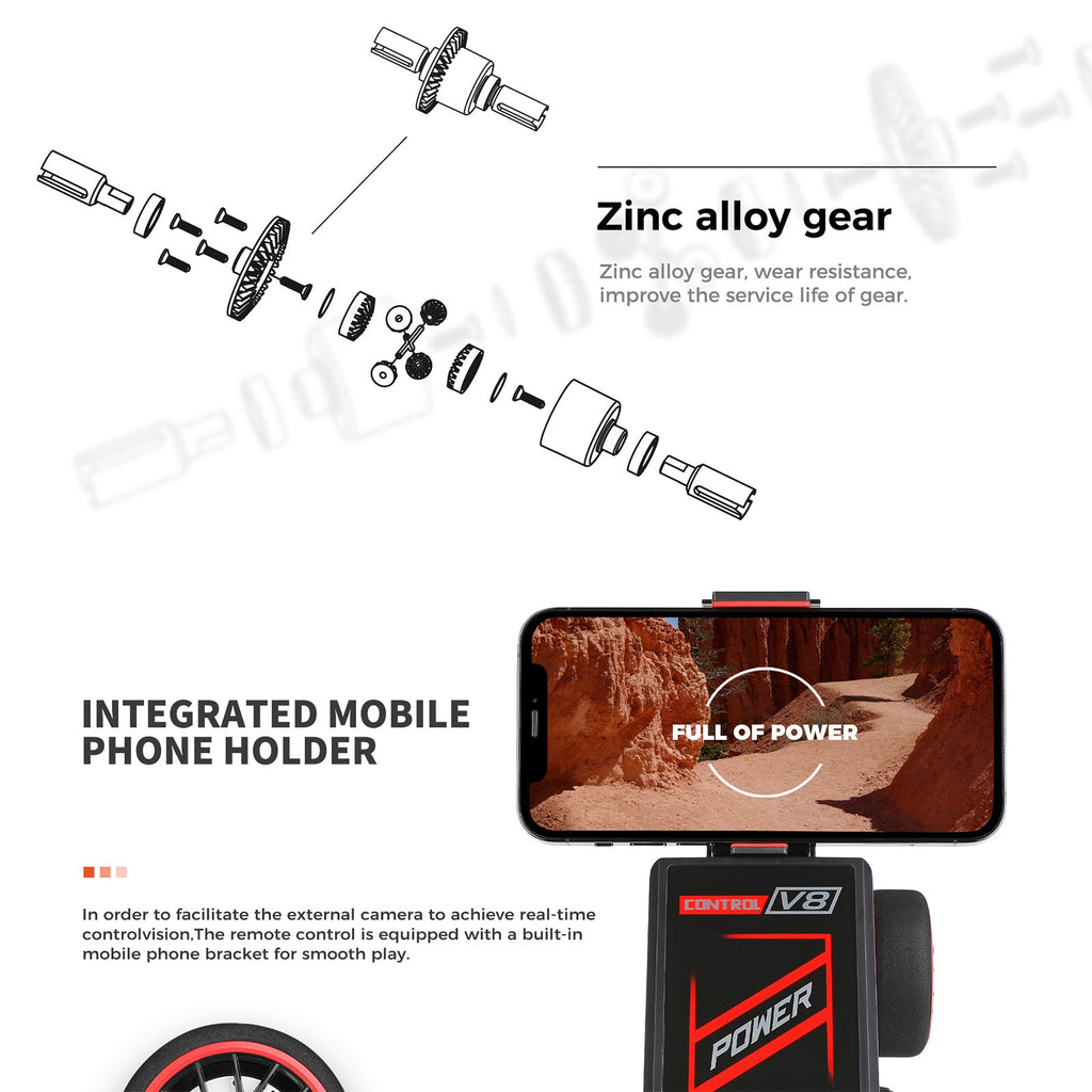 1.ABS CHASSIS AND REINFORCED BODY FRAME - The whole chassis of the remote control car is built of ABS plastic and the main body is made of alloy material. These properties give the truck a longer life span by making it more collision resistant.