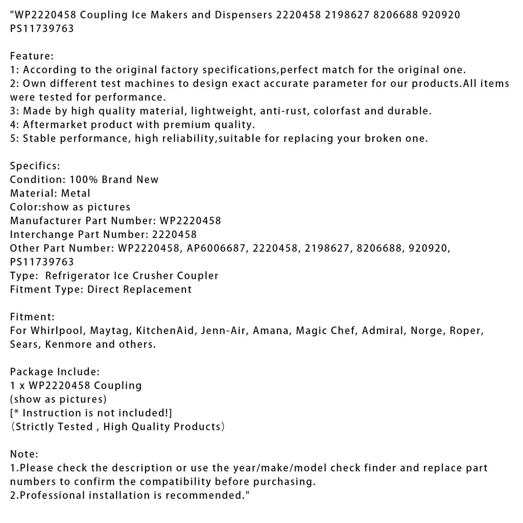 WP2220458 Coupling Ice Makers and Dispensers 2220458 2198627 8206688 920920