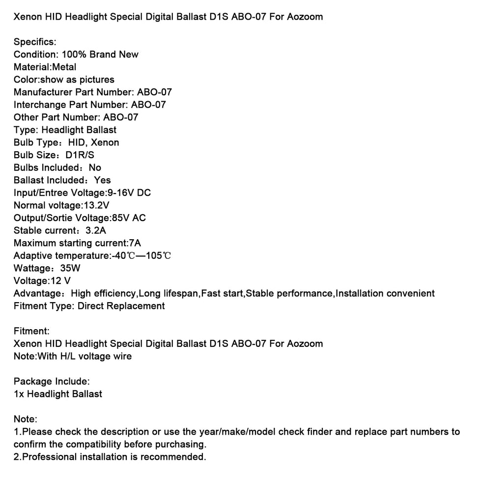 Xenon HID Headlight Special Digital Ballast D1S ABO-07