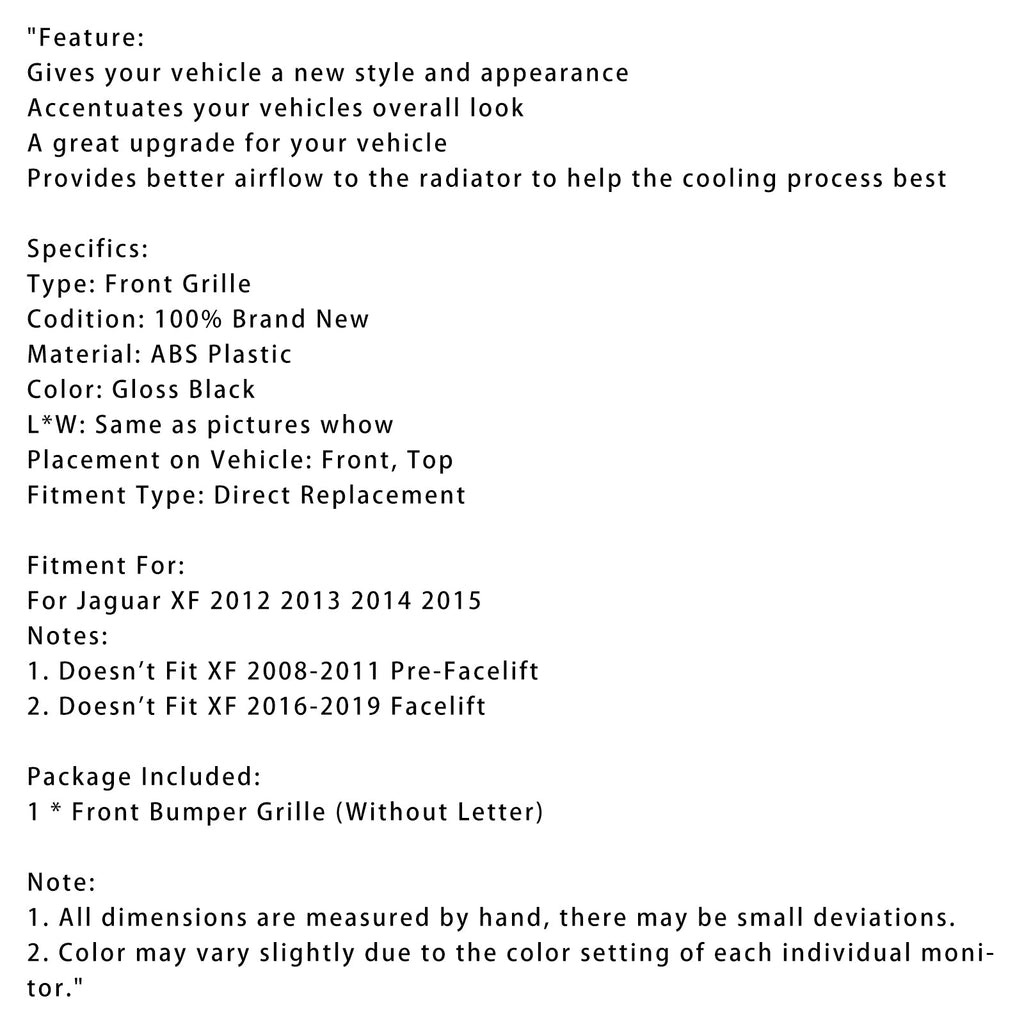 XF-R Style Front Bumper Grill Grille Fit Jaguar XF 2012-2015 Gloss Black