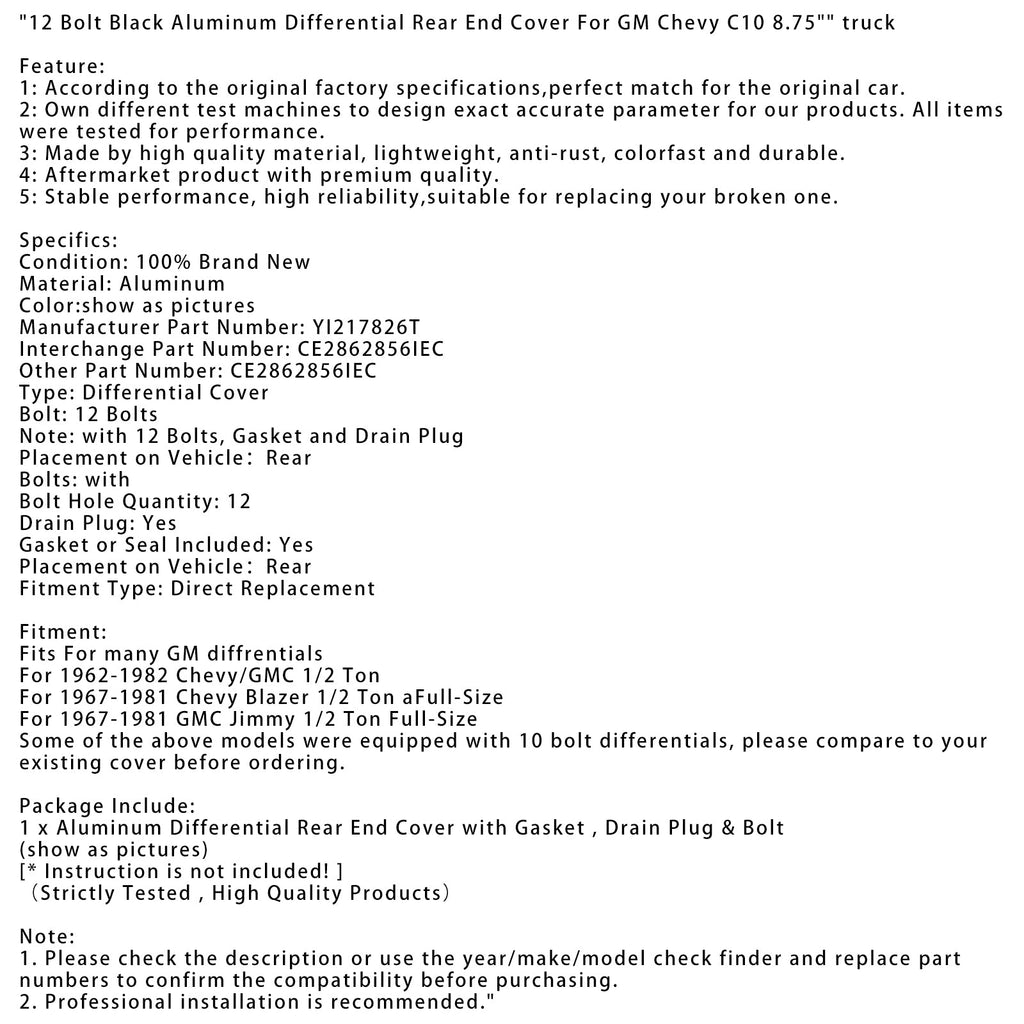 12 Bolt Black Aluminum Differential Rear End Cover For GM Chevy C10 8.75" truck